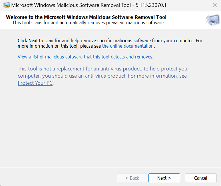 Akan otomatis muncul pop up dari Malicious Software Removal Tool seperti ini teman kyat, Klik Next >