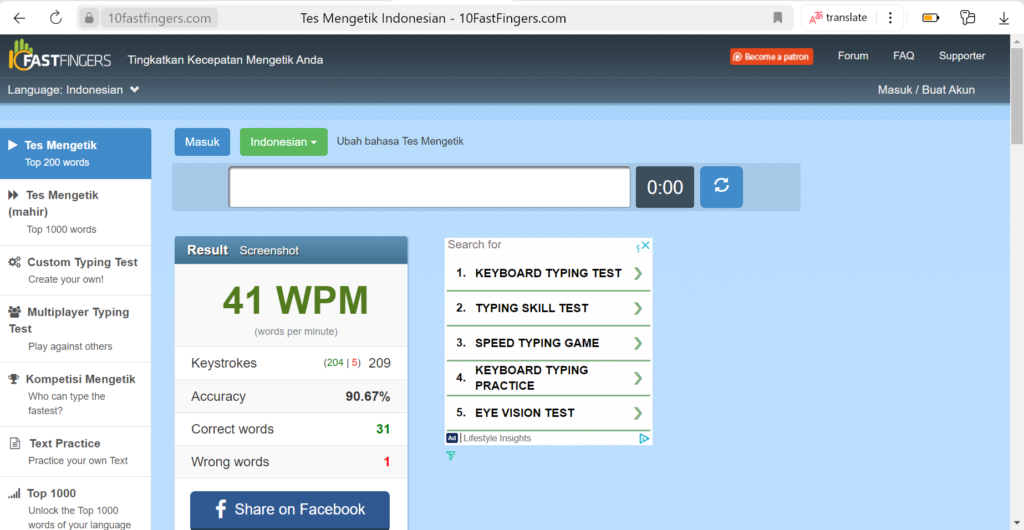 kali ini miminkyat kasih tahu tentang situs mengetik cepat yang FREE dan tanpa login loh, temen kyat pasti suka.